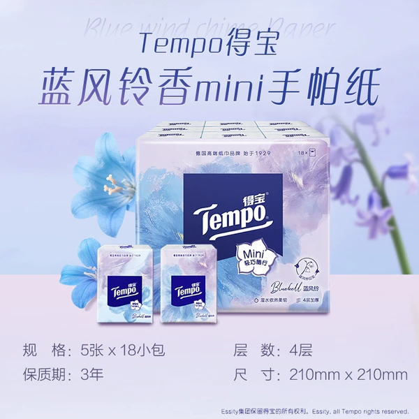 得宝蓝风铃香Mini迷你印花手帕纸四层加厚5张18小包t5 券后17元包邮