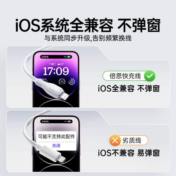 【原价12.5-淘金币0.25-首单0.4=11.85】倍思适用苹果16充电线快充, 快充强又稳,告别充电焦虑,充电快如闪电,持久耐用,超赞~