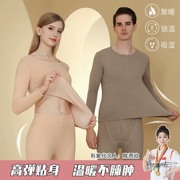 绮曼柠无痕保暖内衣套装双面磨毛绒羊毛蚕丝紧身男女士大人冬季29