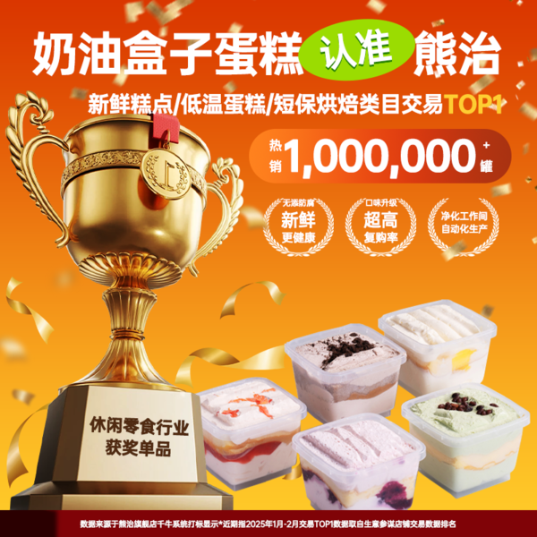 5罐!熊治奶油罐子蛋糕180g*5 券后39.5元包邮