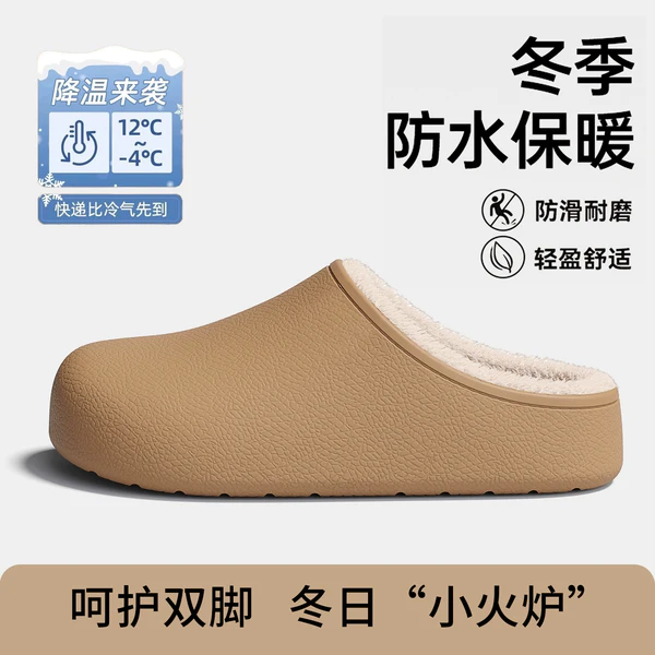 稻草人防水棉拖鞋,女冬季2025新款家居室内厚底加绒保暖棉鞋男外穿