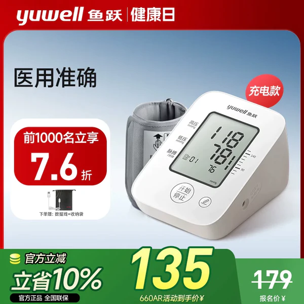 【叠消费卷+淘金币73.2】,鱼跃电子血压计充电测量仪家用老人测压仪器正品官方旗舰店